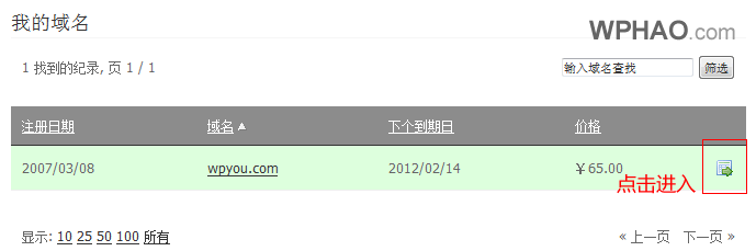1,首先,登录会员中心(客户中心),进入我的域名,该页面会显示您的所有本站注册域名列表信息。具体如下图所示:
